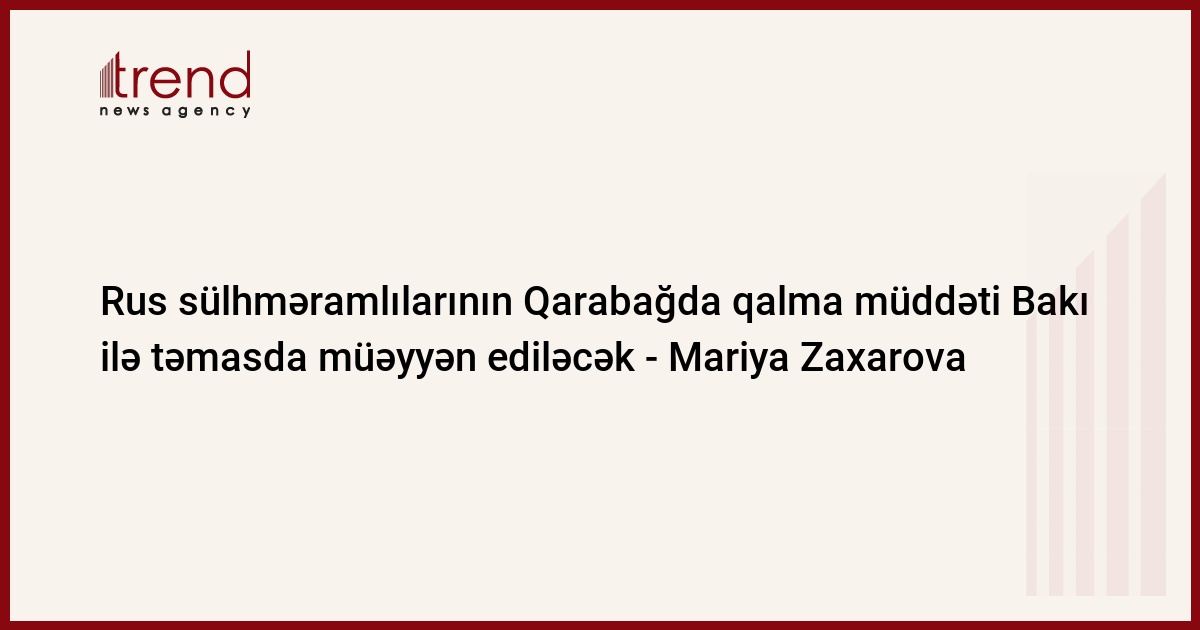 Rus sülhməramlılarının Qarabağda qalma müddəti Bakı ilə təmasda regiondakı vəziyyətdən çıxış edərək müəyyən olunacaq.
