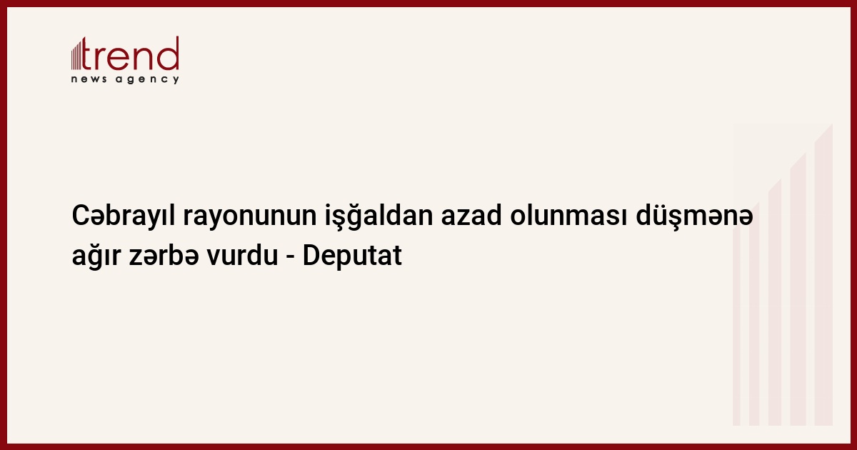 Deputat hesab edir ki, işğaldan azad edilmiş ərazilərdə həyata keçirilən böyük bərpa və quruculuq işlərinin tərkib hissəsi olaraq Cəbrayıl rayonunda da vətəndaşlarımızın öz dogma torpaqlarına qayıdaraq rahat yaşaması üçün bütün tədbirlər həyata keçirilir: