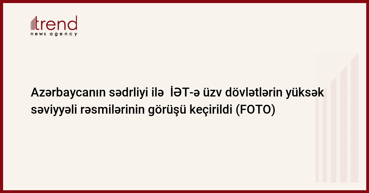 Bu gün Azərbaycan Respublikasının sədrliyi altında İqtisadi Əməkdaşlıq Təşkilatının (İƏT) üzv dövlətlərinin yüksək səviyyəli rəsmilərinin görüşü keçirilib.