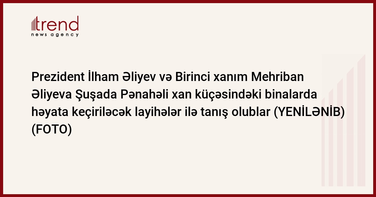 Noyabrın 7-də Azərbaycan Respublikasının Prezidenti İlham Əliyev və Birinci xanım Mehriban Əliyeva Heydər Əliyev Fondu tərəfindən Şuşada Pənahəli xan küçəsində yerləşən bir sıra binalarda həyata keçiriləcək bərpa və yenidənqurma layihələri ilə tanış olublar.