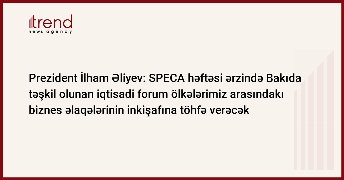 Trend xəbər verir ki, bu fikri Azərbaycan Prezidenti İlham Əliyev BMT-nin Mərkəzi Asiya Ölkələrinin İqtisadiyyatları üçün Xüsusi Proqramının (SPECA) Zirvə görüşündə çıxışında deyib.