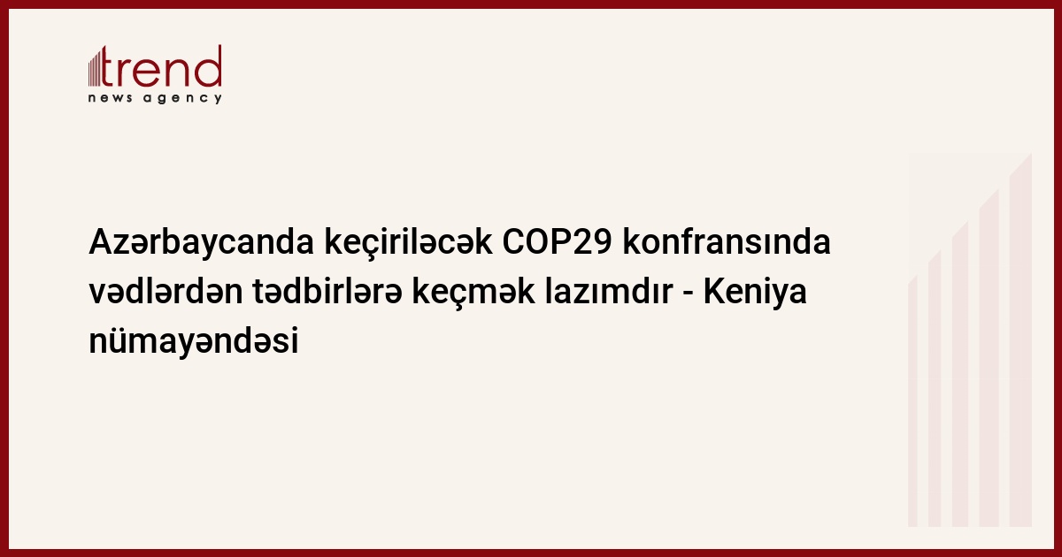 Trend xəbər verir ki, bunu Keniya nümayəndəsi Cozef Nyuquna jurnalistlərə Dubayda (BƏƏ) keçirilən COP28 konfransının kuluarlarında deyib.