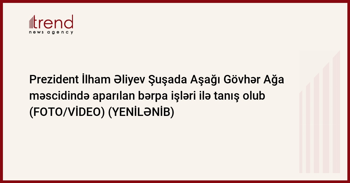 Azərbaycan Respublikasının Prezidenti İlham Əliyev dekabrın 21-də Şuşa şəhərində Aşağı Gövhər Ağa məscidində aparılan bərpa işləri ilə tanış olub.