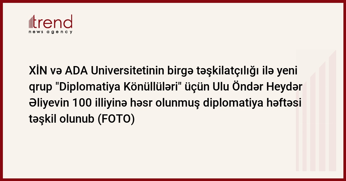 18-22 dekabr 2023-cü il tarixlərində Azərbaycan Respublikasının Xarici İşlər Nazirliyi və ADA Universitetinin birgə təşkilatçılığı ilə yeni qrup "Diplomatiya Könüllüləri" üçün Ulu Öndər Heydər Əliyevin 100 illiyinə həsr olunmuş diplomatiya həftəsi təşkil olunub.