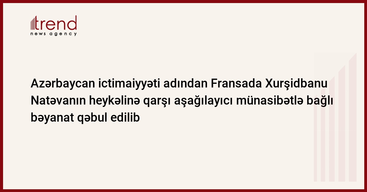 Azərbaycan ictimaiyyəti adından Fransada Xurşidbanu Natəvanın heykəlinə qarşı aşağılayıcı münasibətlə bağlı bəyanat qəbul edilib.