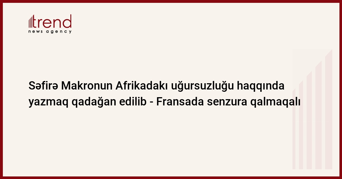 Fransa Xarici İşlər Nazirliyi ölkənin Nigerdəki səfirinə prezident Emmanuel Makronun Afrikadakı uğursuzluğu haqqında kitab nəşr etməyi qadağan edib və bu, yeni qalmaqala səbəb olub.