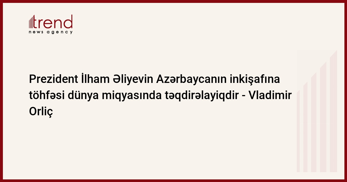 "Bu gün ölkələrimiz arasındakı münasibətlər ilk öncə möhkəm dostluq və liderlərimiz Prezident Aleksandr Vuçiç və Prezident İlham Əliyevin qarşılıqlı hörmət və dəstəyi əsasında qurulur. Hər iki ölkənin hökumət, parlament və vətəndaşları sıx əlaqə saxlayır. Serbiya və Azərbaycan arasında səmimi qəlbdən qürur duyduğumuz münasibətlər gələcəkdə də möhkəmlənməyə davam edəcək", - deyə Orliç qeyd edib.