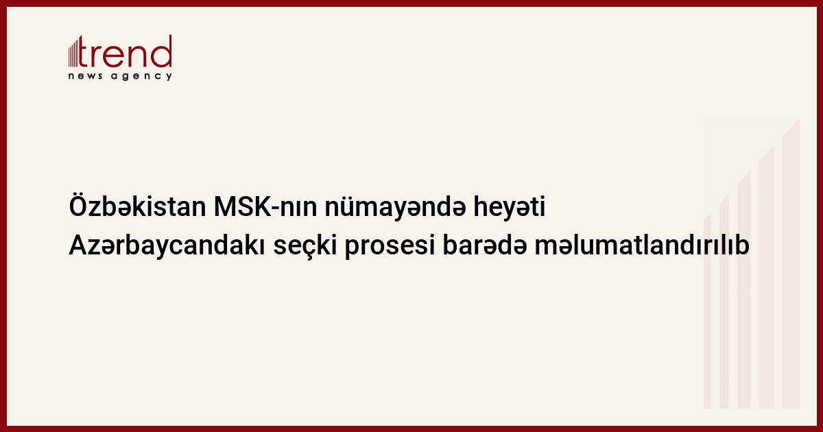 Mərkəzi Seçki Komissiyasının sədri Məzahir Pənahov fevralın 7-də Özbəkistan Mərkəzi Seçki Komissiyasının sədri Zayniddin Nizamxodjayevin rəhbərlik etdiyi nümayəndə heyəti ilə görüşüb.