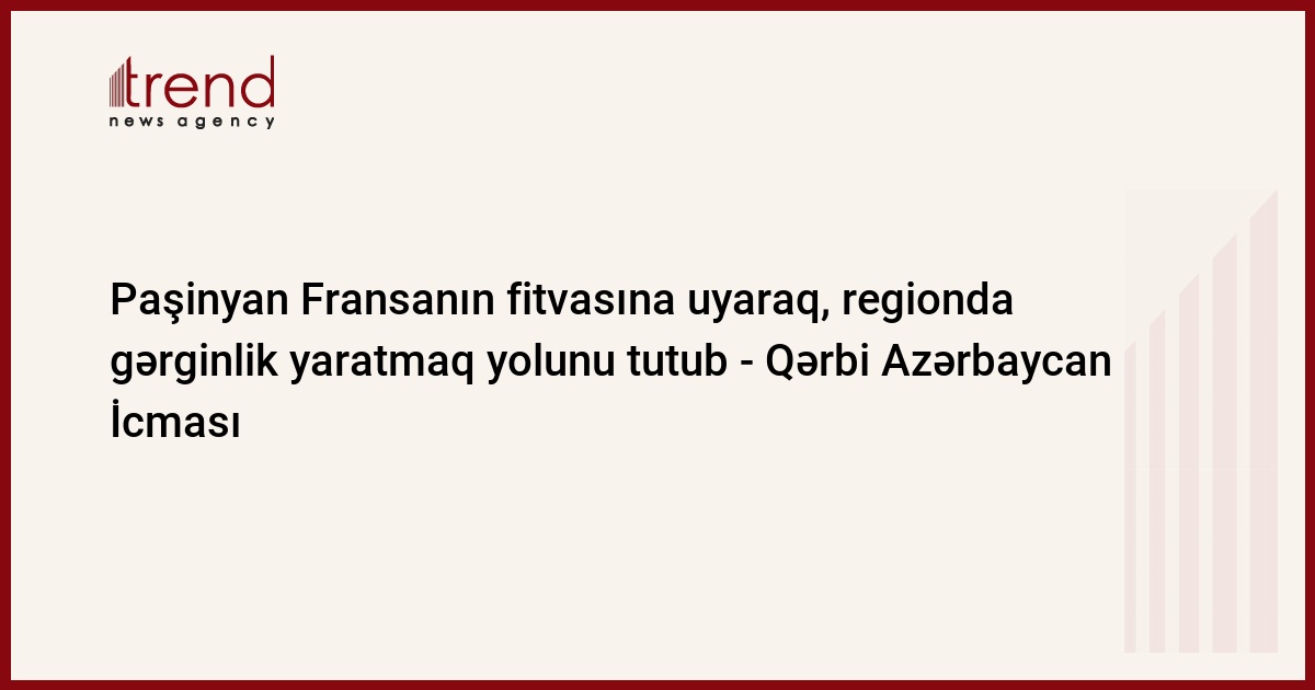 Fransada səfərdə olan Ermənistanın baş naziri N.Paşinyan növbəti dəfə anti-Azərbaycan bəyanatlar verib. Paşinyan Qərbi Azərbaycan ifadəsinin Ermənistanın ərazi bütövlüyünə qarşı olduğunu iddia edərək, Azərbaycanı Ermənistana hücum etməyə hazırlaşmaqda ittiham etməyə çalışıb.