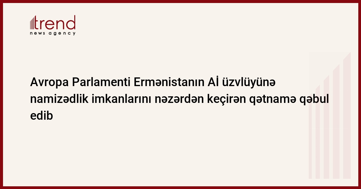 Avropa Parlamenti Ermənistanın Aİ üzvlüyünə namizədlik imkanlarını nəzərdən keçirən qətnamə qəbul edib.