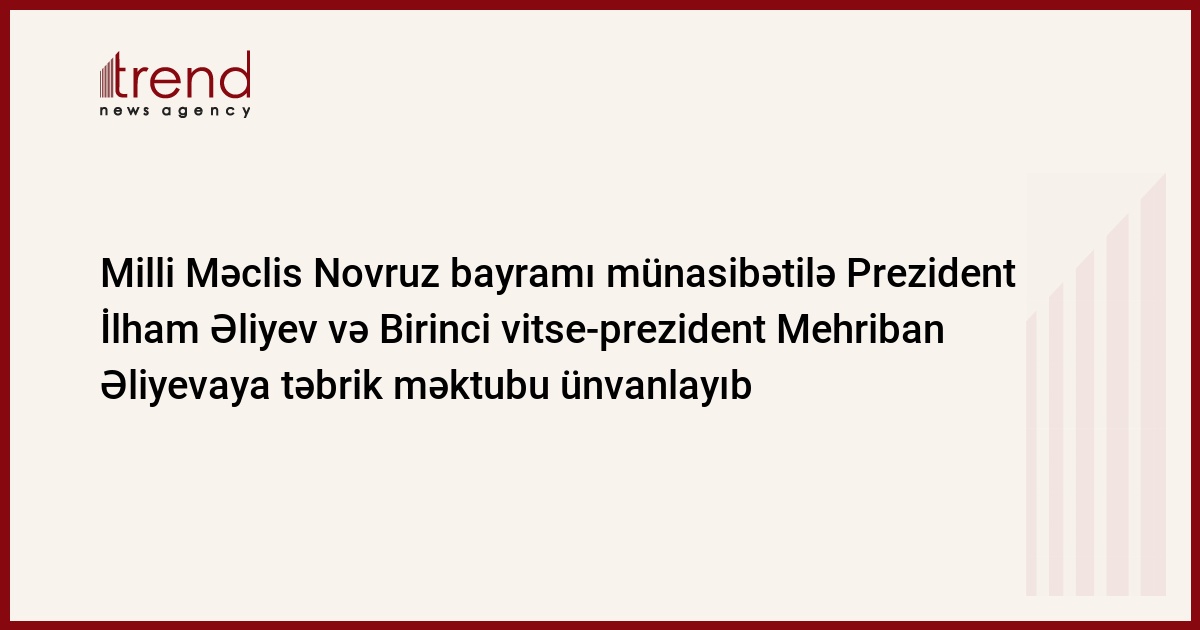 Milli Məclis Novruz bayramı münasibətilə Prezident İlham Əliyev və Birinci vitse-prezident Mehriban Əliyevaya təbrik məktubu ünvanlayıb.