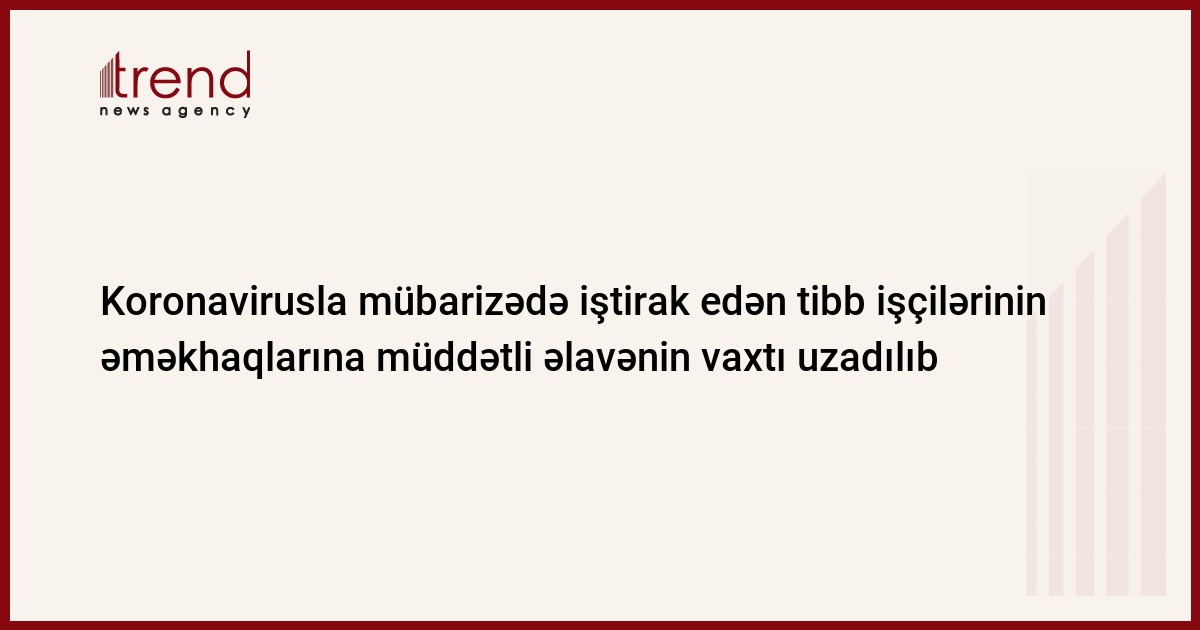 COVID-19-la mübarizədə iştirak edən tibb işçilərinin əməkhaqlarına müddətli əlavənin vaxtı uzadılıb.