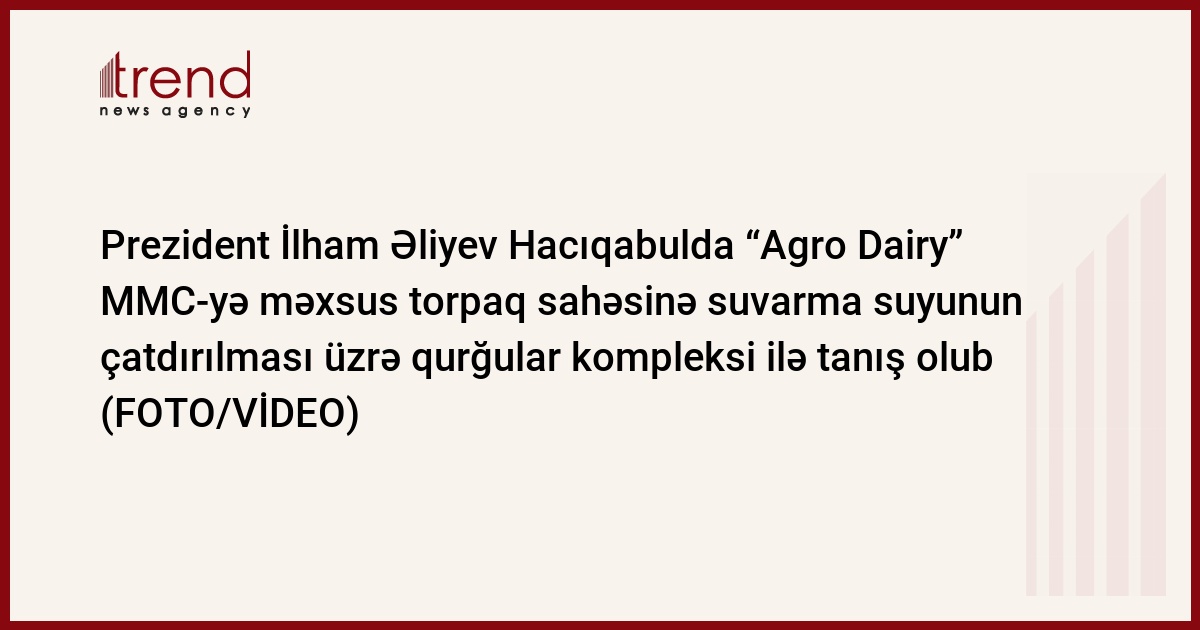 Aprelin 9-da Azərbaycan Respublikasının Prezidenti İlham Əliyev Hacıqabul rayonunda “Agro Dairy” MMC-yə məxsus 4200 hektar torpaq sahəsinə Kür çayından nasos stansiyası vasitəsilə suvarma suyunun çatdırılması üzrə suvarma qurğuları kompleksi ilə tanış olub.