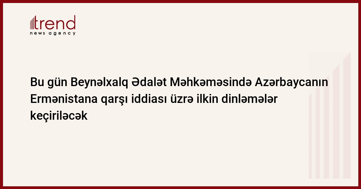 Bu gün Beynəlxalq Ədalət Məhkəməsində Azərbaycanın Ermənistana qarşı iddiası üzrə ilkin dinləmələr keçiriləcək.