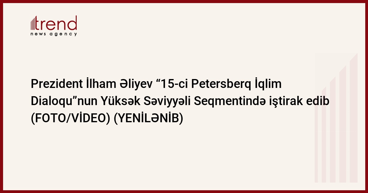 Azərbaycan Respublikasının Prezidenti İlham Əliyev aprelin 26-da Almaniyanın paytaxtı Berlində keçirilən “15-ci Petersberq İqlim Dialoqu”nun Yüksək Səviyyəli Seqmentində iştirak edib.