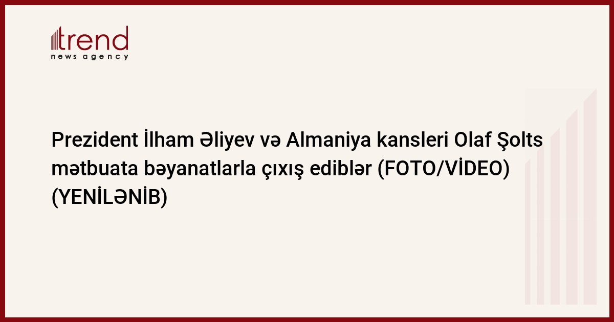 Azərbaycan Respublikasının Prezidenti İlham Əliyev və Almaniya Federativ Respublikasının Kansleri Olaf Şolts aprelin 26-da birgə mətbuat konfransı keçiriblər.
