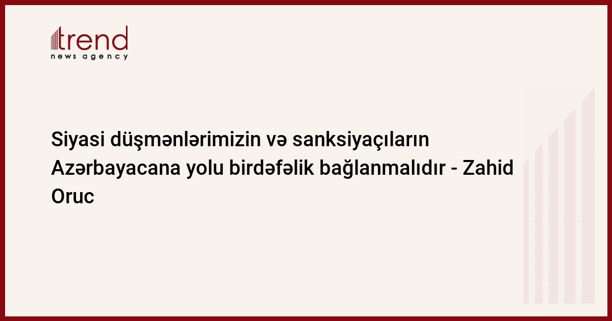 "“Gürcü arzusu”nun lideri İvanişvli haqlı olaraq onları “qlobal müharibə partiyası” adlandırır. Bizə xarici siyasət kursumuzu dəyişməyi, Ağ Evin və Brüsselin təsir agentlərinə çevirdikləri qeyri-hökumət təşkilatlarına rəsmi hakimiyyət verməyi tələb edirlər. Bu il aprelin 24-də Cozef Baydenin “artsax” kəlməsini işlətməməsi və Xankəndidə “etnik təmizləmə” iddiasına “sıfır reaksiyası “sənəd”i heç bir hüquqi əsası olmayan “erməni aktı”na çevirir. Siz riyakarlığa baxın ki, Bob Menendesin korrupsiyaya əməllərinin ifşasından sonra indi konqresmen Henri Kuelyanı guya Azərbaycandan rüşvət almaqda ittiham edirək, ölkəmizin dostlarını linç etməyə qalxıblar. Ona görə Azərbaycan dövlətinin sanksiyalara cavabı Böyük qayıdışı gücləndirməsi, delimitasiyasını addım-addım irəliyə aparması, regionda sülhü qazanması, qardaş Türkiyə ilə hərbi-siyasi ittifaqı möhkəmləndirməsi, region dövlətləri ilə konfrontasiyaya getməməsi, nəhayət, torpaqlarımızın işağlına dəstək verən konqresmenləri, dövlət katibi Ceyms Beykerdən, Göyçə dağlarına qədər gəlib çıxan Foq Rasmussenədək hamısını qara siyahıda dünyaya sülhün düşmənləri kimi göstərmək olmalıdır. Siyasi düşmənlərimizin və sanksiyaçıların Azərbayacana yolu birdəfəlik bağlanmalıdır", - o deyib.