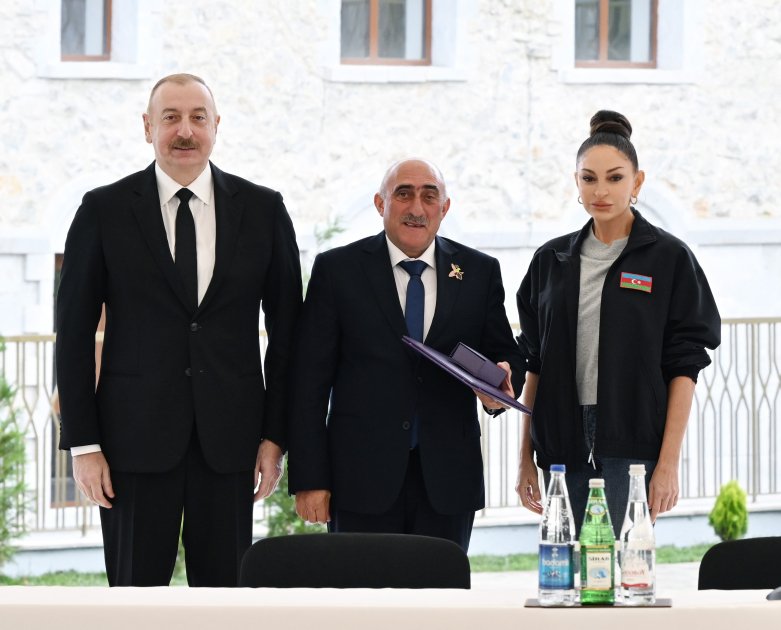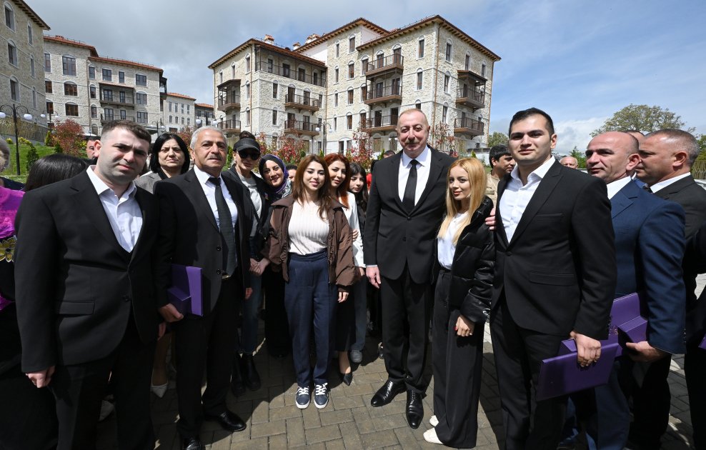 Azərbaycan Respublikasının Prezidenti İlham Əliyev və Birinci xanım Mehriban Əliyeva Şuşada birinci yaşayış kompleksinin açılışında iştirak edib və şəhərə köçmüş ilk sakinlərlə görüşüblər.