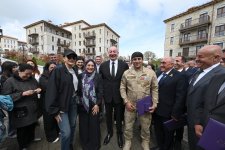 Dövlətimizin başçısı və birinci xanım mənzillərin açarlarını sakinlərə təqdim etdilər.