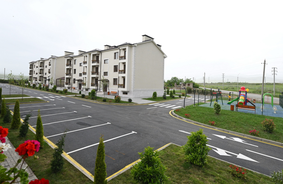 Bildirildi ki, Xocalı şəhərindəki yarımçıq tikili olan yaşayış kompleksi əsaslı təmir edilib. Kompleks 3,34 hektar ərazini əhatə edir. Burada hər biri ikigirişli olmaqla üçmərtəbəli 15 binada ikiotaqlı, üçotaqlı və dördotaqlı 80 mənzil var. Kompleksdə uşaq oyun meydançaları, idman qurğuları, idman meydançası, söhbətgahlar yaradılıb.