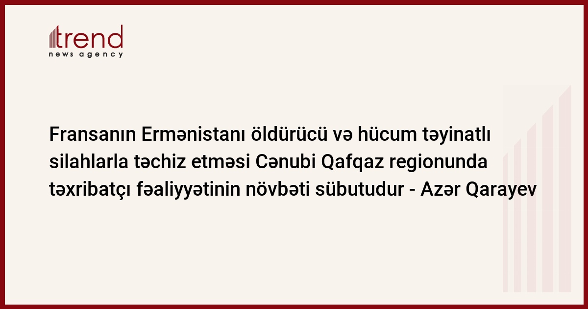 A.Qarayev bildirib ki, Ermənistan Azərbaycana qarşı hərbi təcavüz və işğal törətmiş dövlətdir. BMT Təhlükəsizlik Şurasının daimi üzvü olan Fransa tərəfindən qanlı hərbi təcavüz törətmək təcrübəsi olan Ermənistanın yenidən silahlandırılması və Ermənistan rəhbərliyinin revanşizm siyasətini dəstəkləməsi siyasi məsuliyyətsizlik olmaqla bərabər yeni müharibəyə aparan yoldur.