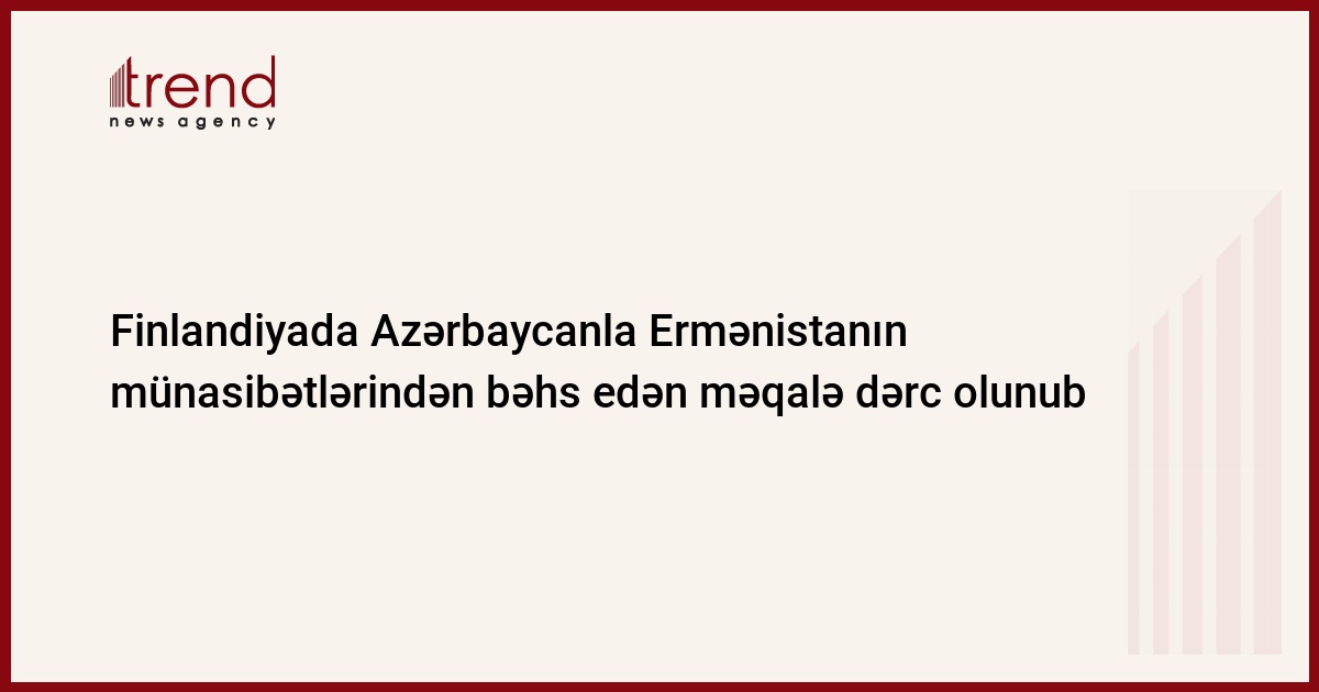Finlandiyanın “Naapuriseuran Sanomat” saytında Ermənistanın Azərbaycana qarşı mina terrorundan, Qarabağ münaqişəsinin tarixindən və torpaqlarımızın azadlığı uğrunda mübarizədən, Azərbaycanla Ermənistan arasında münasibətlərin normallaşması istiqamətində atılan addımlardan bəhs edən məqalə dərc olunub.