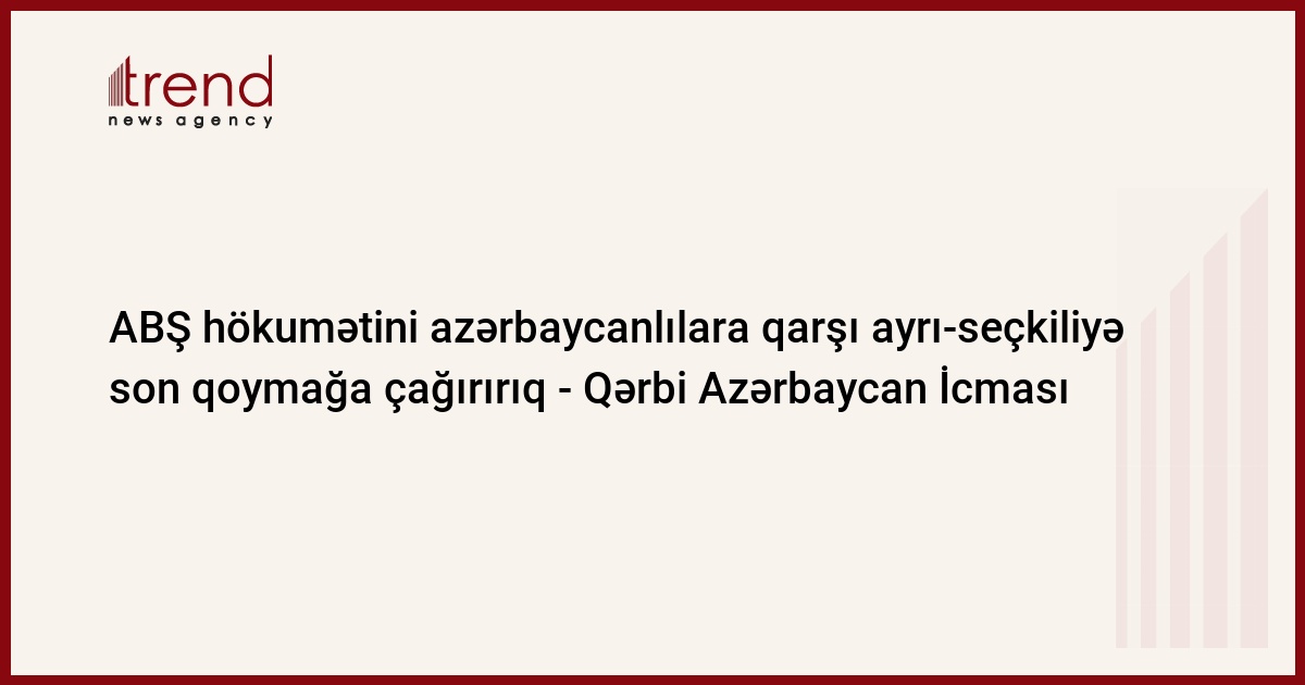 Biz ABŞ hökumətini azərbaycanlılara qarşı ayrı-seçkiliyə son qoymağa, bölgədə yenidən münaqişə alovlandırmaq cəhdlərindən əl çəkməyə və deportasiya olunmuş azərbaycanlıların Ermənistana qayıdışına dəstək olmağa çağırırıq".