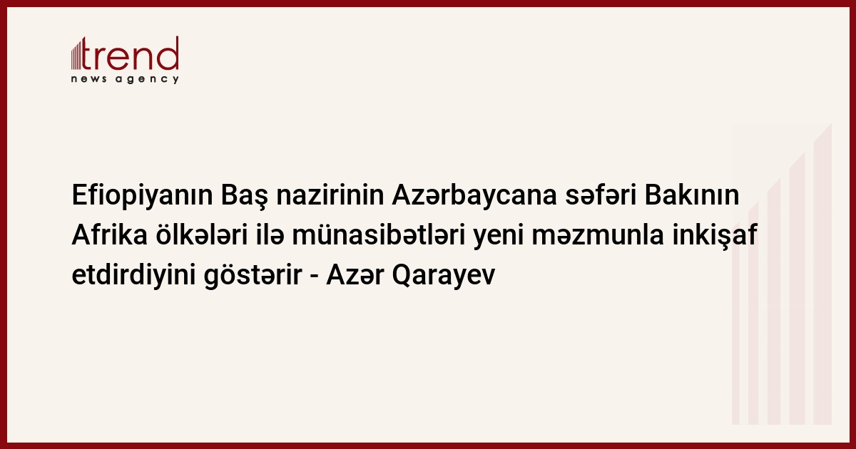 "Abiy Əhməd Əlinin Azərbaycana səfəri göstərdi ki, Bakı Afrika ölkələri ilə münasibətləri yeni məzmunla inkişaf etdirməyə çalışır. Enerji, logistika, dövlət idarəçiliyi və rəqəmsal texnologiyalar sahəsində Azərbaycanın formalaşdırdığı təcrübə Efiopiya kimi sürətlə inkişaf edən dövlətlər üçün praktik əməkdaşlıq platforması yaradır. Beləliklə, bu səfər iki ölkə arasında diplomatik əlaqələrin sadəcə başlanğıcı deyil, həm də uzunmüddətli iqtisadi, texnoloji və institusional tərəfdaşlığın əsasını qoyan mühüm siyasi hadisə kimi qiymətləndirilə bilər", - A.Qarayev əlavə edib.