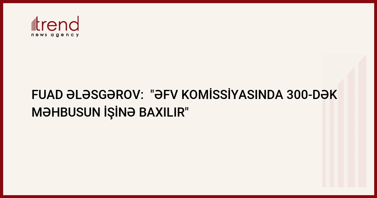 "Azərbaycan prezidenti yanında Əfv komissiyasında hazırda 300-dək məhbusun işinə baxılır. Onların böyük bir qismininprezidentin növbəti əfv fərmanı ilə azad olunacağı istisna olunmur". Bunu prezidentin İcra Aparatının Hüquq-mühafizə orqanları ilə iş şöbəsinin müdiri Fuad Ələsgərov Trend ə müsahibəsində bildirmişdir.