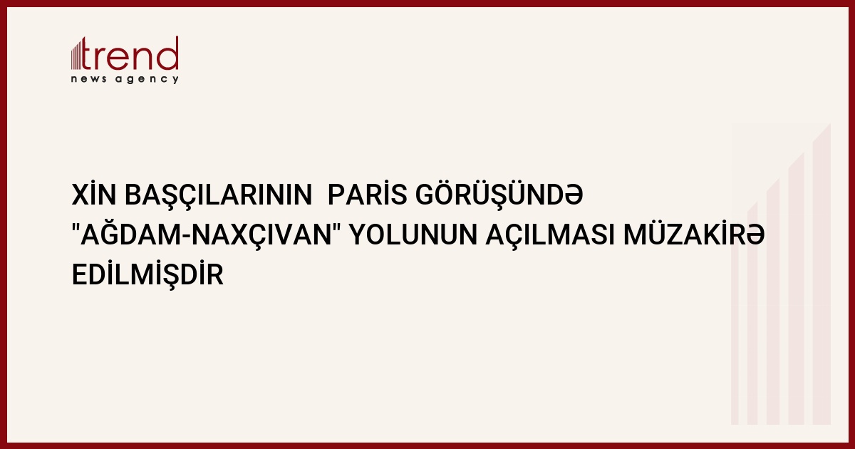 İyunun17-də Parisdə bir araya gəlmişAzərbaycan və Ermənistanın xarici işlər nazirləriElmar MəmmədyarovlaVardan Oskanyanın görüşündə"Ağdam-Naxçıvan" şosse yolunun açılması məsələsi də müzakirə edilmişdir. Trend ğinformasiya agentliyi xəbər veir ki, bu haqdaAzərbaycan prezidentinin Dağlıq Qarabağmünaqişəsi üzrə xüsusi nümayəndəsi, xarici işlər nazirinin müavini Araz Əzimov jurnalistlərlə söhbətində bildirmişdir.