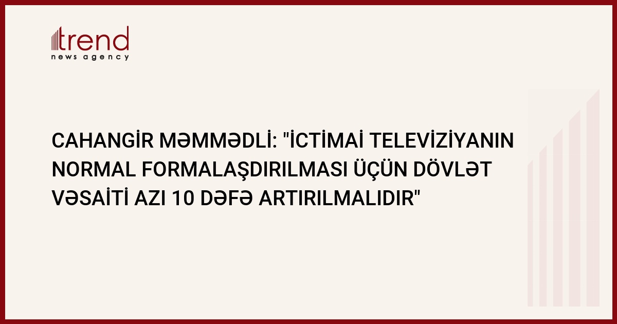 "İctimai televiziya avqust ayında fəaliyyətə başlayacaq. Yayım Şurası isə artıq seçilən gündən fəaliyyətə başlayıb. İctimai televiziyanın direktorundan başqa, biz ayrı-ayrı departamentlərin rəhbərlərini də seçmişik". Bu fikirləri İctimai Televiziyanın (İTV) Yayım Şurasının sədri Cahangir Məmmədli Trend ə müsahibəsində bildirib.