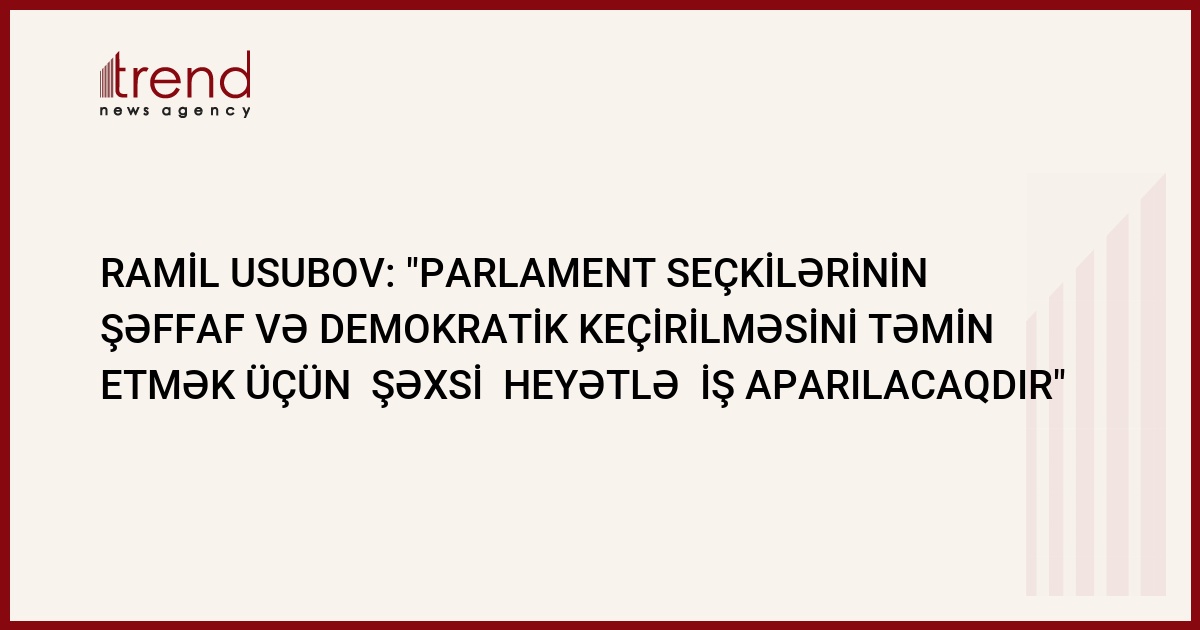 "Parlament seçkiləri ilə əlaqədar ölkədə ictimai asayışın qorunması, seçkilərdə namizəd kimi iştirak edəcək vətəndaşların təhlükəsizliyinin təmin olunması , eləcə də seçkiqabağı təbliğat kampaniyalarının aparılması və seçki məntəqəlrinin mühafizəsinin təmin olunması istiqamətində Daxili İşlər Nazirliyinin(DİN) əməkdaşları üzərlərinə düşən bütün vəzifələri yerinə yetirəcəklər". Bunu daxili işlər naziri, general-polkovnik Ramil Usubov Trend ə verdiyi eksklüziv müsahibəsində bildirmişdir. Onun sözlərinə görə, bu məqsədlə DİN-də artıq müvafiq tədbirlərin görülməsinə başlanılmışdır.