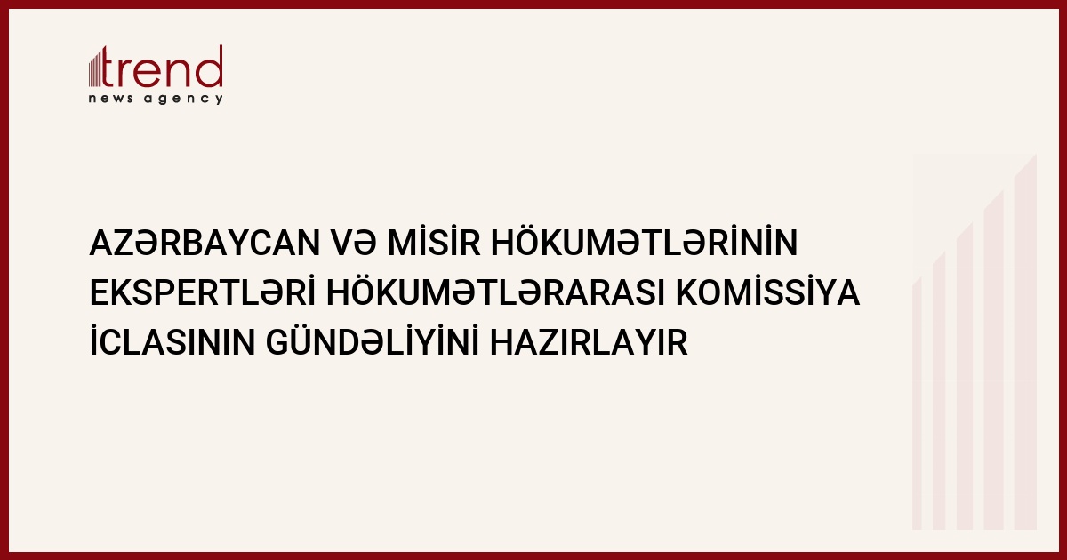 İqtisadi əməkdaşlıq üzrə Azərbaycan -Misir hökumətlərarası komissiyanın II iclasının gündəliyi iyulun birinci yarısında Qahirədə iki ölkə hökuməti ekspertlərinin görüşündə razılaşdırılacaq.Bu barədə Trend agentliyinə Misirin Azərbaycandakı səfirliyində bildirilib.