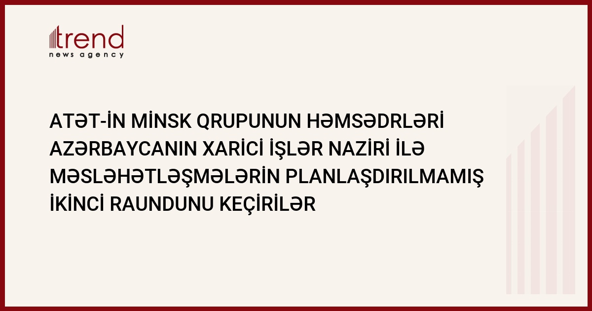 ATƏT-in Minsk qrupunun həmsədrləri iyulun 12-də Bakıda Azərbaycanın Xarici İşlər naziri Elmar Məmmədyarovla planlaşdırılmamış məsləhətləşmələrin ikinci raundunu keçiriblər. Bu barədə Trend agentliyinə AR XİN-dən məlumat veriblər.