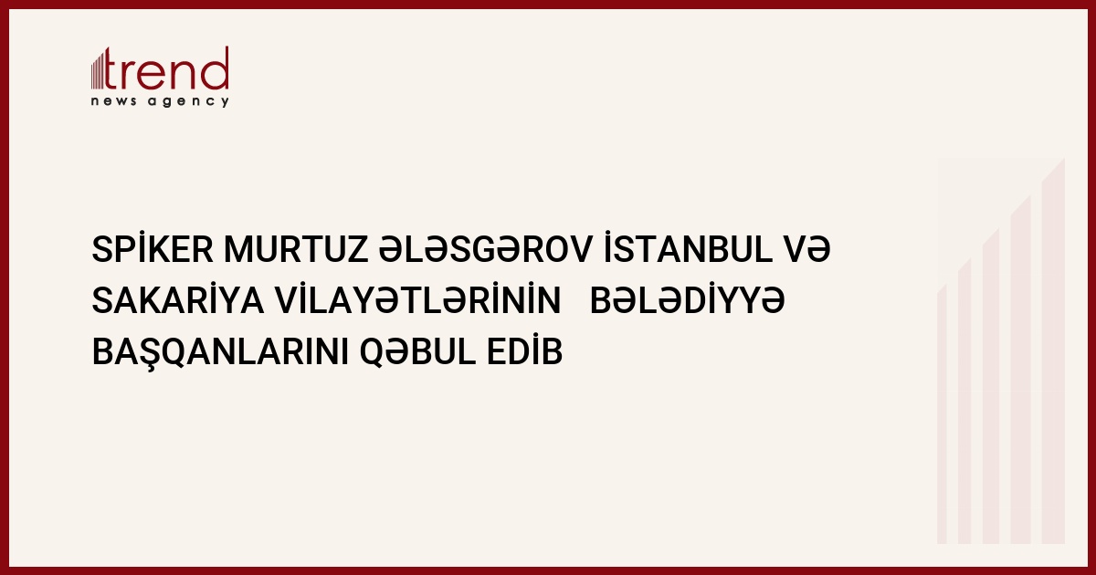 İyulun 15-də Milli Məclisin (MM) sədri Murtuz Ələsgərov Azərbaycanda səfərdə olan Türkiyənin İstanbul və Sakarya vilayətlərinin bələdiyyə başqanlarından ibarət nümayəndə heyətini qəbul edib. Bu haqda MM-in mətbuat xidmətinin rəhbəri Aqşin Babayev Trend ə bildirib.