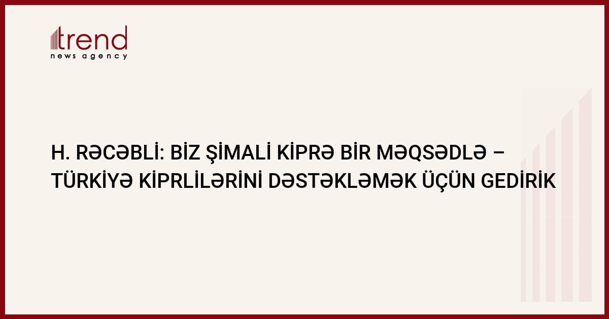 "Biz Kiprə bir məqsədlə - Türkiyə kiprlilərini dəstəkləmək üçün gedirik", - deyə, H.Rəcəbli bildirib. O, həmçinin Şimali Kiprin Azərbaycan üçün birinci dərəcəli əhəmiyyət kəsb etdiyini vurğulayıb.