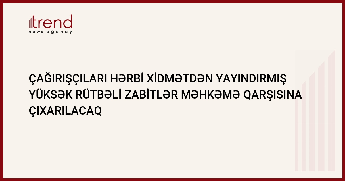 İyulun 26-da Ağır Cinayətlərə Dair İşlər Üzrə Məhkəmədə Müdafiə Nazirliyinin yüksək rütbəli əməklaşdarının məhkəməsi başlanacaq. Trend xəbər verir ki, məhkəmə prosesinin qapalı keçirilməsi nəzərdə tutulub. Səbəb təqsirləndirilənlər arasında MTN zabitlərinin də olmasıdır.