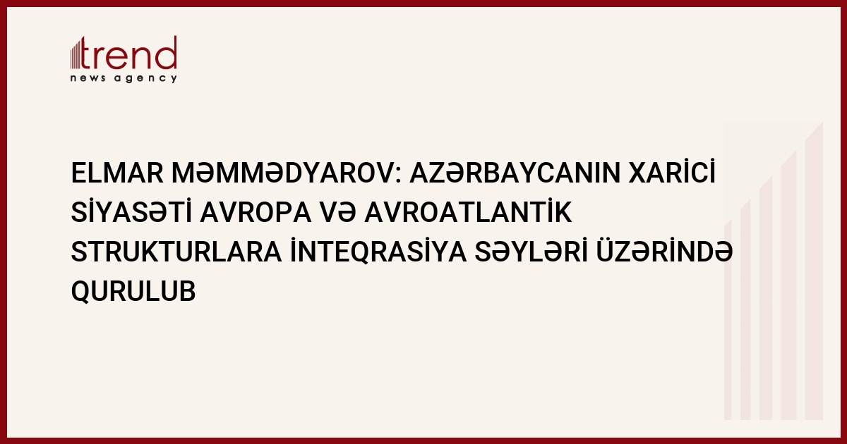 (İTAR-TASS) - Azərbaycanın xarici siyasəti Avropa və Avroatlantik strukturlara inteqrasiya səyləri üzərində qurulub. Bu barədə Azərbaycanın xarici işlər naziri Elmar Məmmədyarov Karnegi fondunda çıxışı zamanı bildirib.