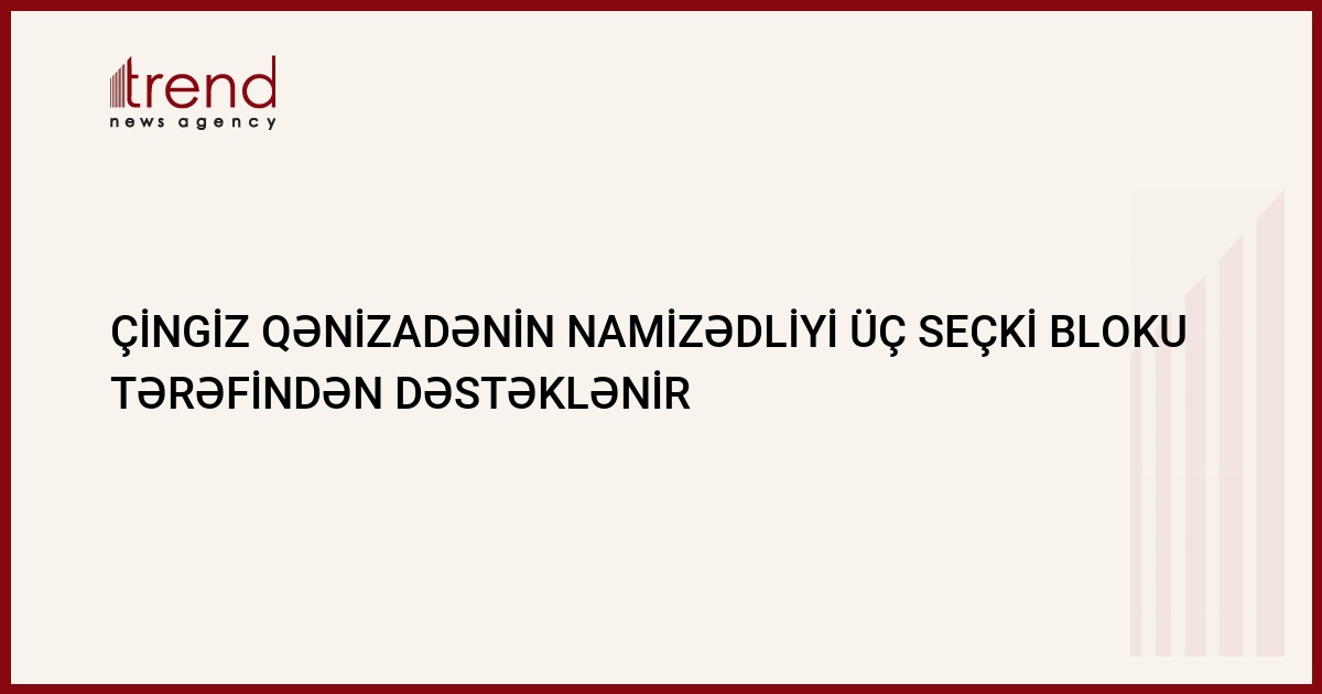 "Yeni Siyasət" blokunun Ağdaş rayon şöbələri həmin ərazidən "Azadlıq" blokunun namizədlər siyahısında olan Çingiz Qənizadəni dəstəkləməyə qərar veriblər. Bu barədə Trend ə hüquq müdafiəçisi Çingiz Qənizadə məlumat verib.