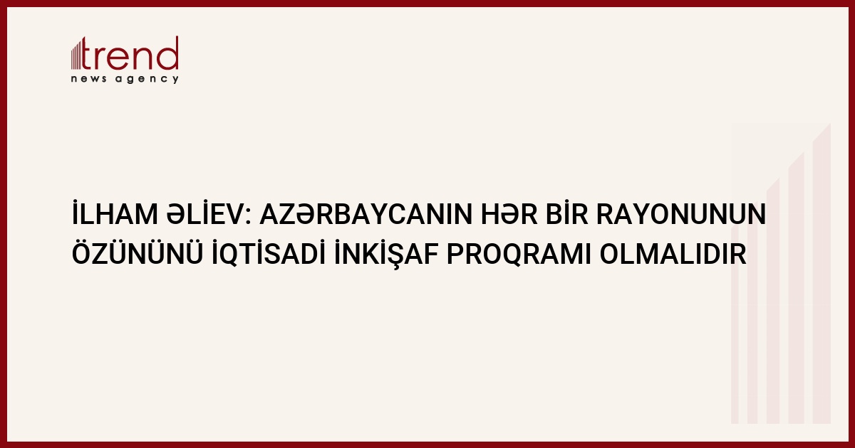 Razərbaycanın regionlarının dövlət inkişaf proqramları ilə yanaş respublikanın hər bir rayonu üzrə fərdi iqtisadi inkişaf proqramları olmalıdır. Trend in ATV telekanalına istinadən yaydığı xəbərə görə, belə bir bəyanatla avqustun 19-da ölkənin şimal-qərb rayonlarında səfərdə olan Azərbaycan prezidenti İlham Əliyev çıxış edib.