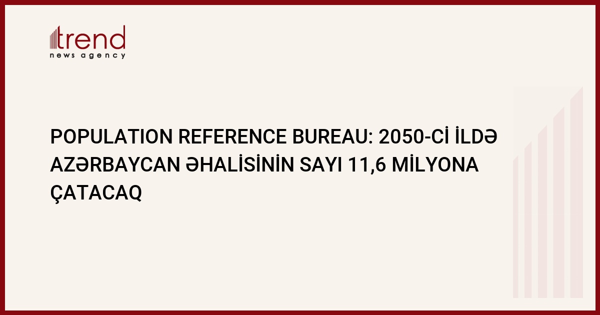 2050-ci ildə Azərbaycan əhalisinin sayı 11,6 milyona çatacaq. Trend in məlumatına görə, bu proqnoz Iaşinqtonun "Population Reference Bureau" ictimai-tədqiqat təşkilatının "2005-ci ildə dünya əhalisi haqqında hesabat"ında verilib.
