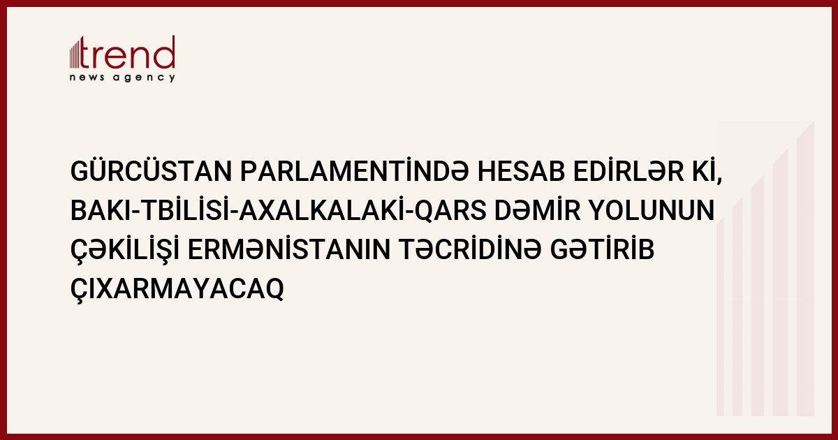 Gürcüstan parlamentində hesab edirlər ki, Azərbaycan, Gürcüstan və Türkiyəni Bakı-Tbilisi-Axalkalaki-Qars marşrutu ilə birləşdirən dəmir yolunun çəkilişi Ermənistanın təcridinə gətirib çıxarmayacaq.Bu barədə Trend agentliyi RİA "Novosti"-yə istinadən bildirir.