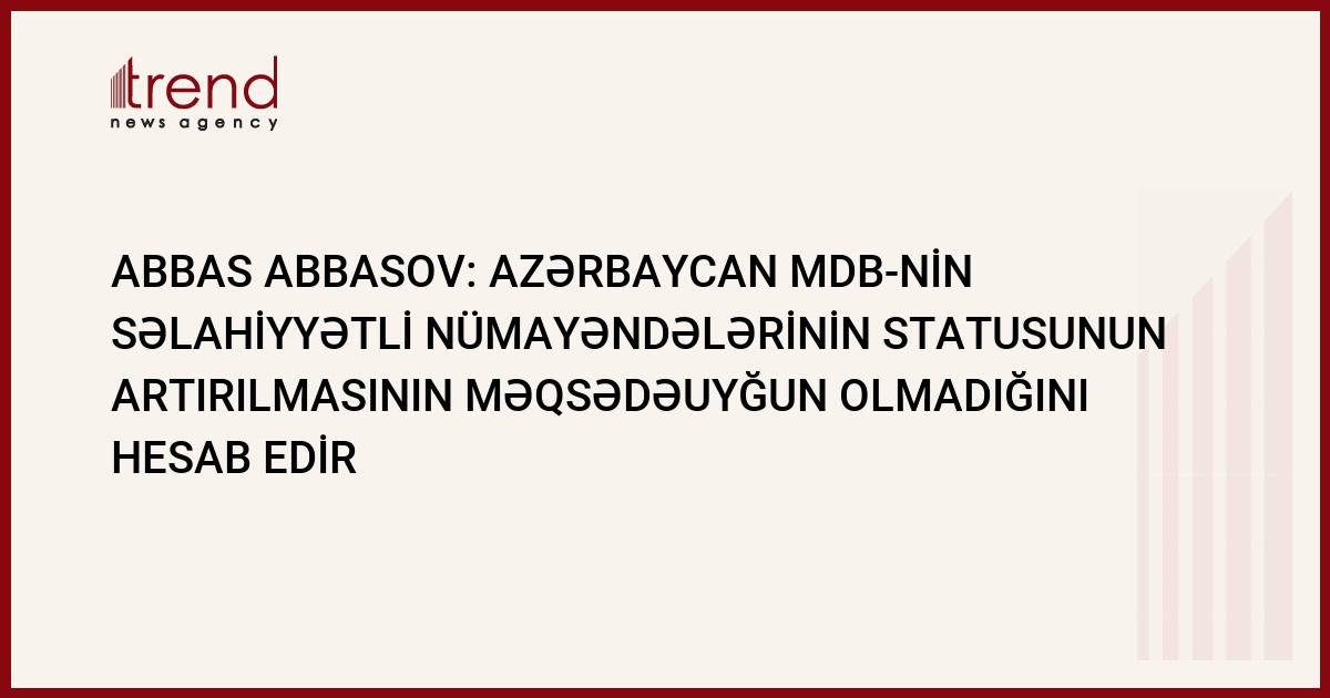 "Azərbaycan Kazanda keçirilmiş MDB sammitində səlahiyyətli nümayəndələrin statusunun artırılması məsələsini nizamlayan sənədi imzalamayıb". Bu barədə avqustun 29-da Azərbaycan Nazirlər Kabinetinin sədrinin birinci müavini Abbas Abbasov Trend ə eksklüziv olaraq bildirib. Onun sözlərinə görə, Azərbaycan səlahiyyətli nümayəndələrin statuslarının artırılmasını məqsədə uyğun hesab etmir.