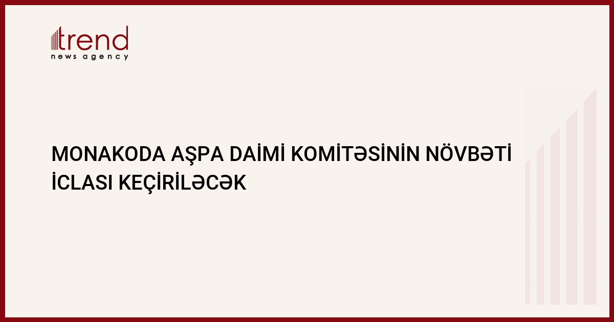 Sentyabrın 1-də Monakoda Avropa Şurası Parlament Assambleyası (AŞPA) Daimi komitəsinin iclası keçiriləcək.Bu barədə Trend agentliyinə parlamentin beynəlxalq münasibətlər və parlamentlərarası əlaqələr komissiyasının sədri, AŞPA-da Azərbaycan nümayəndə heyətinin başçısı Səməd Seyidov bildirib.