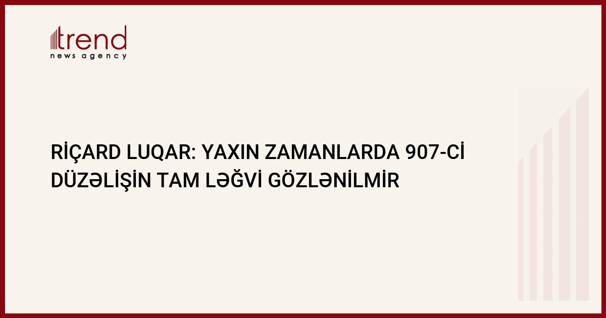ABŞ tərəfindən Azərbaycana maliyyə yardımı göstərilməsini qadağan edən 907-ci düzəlişin yaxın zamanlarda tam ləğvi gözlənilmir. Trend agentliyi bildirir ki, avqustun 31-də Bakıda keçirilən mətbuat konfransında ABŞ -nın Respublikaçılar Partiyasının İndiana ştatından olan senatoru Riçard Luqar (Richard G. Lugar) bu barədə bəyan edib.