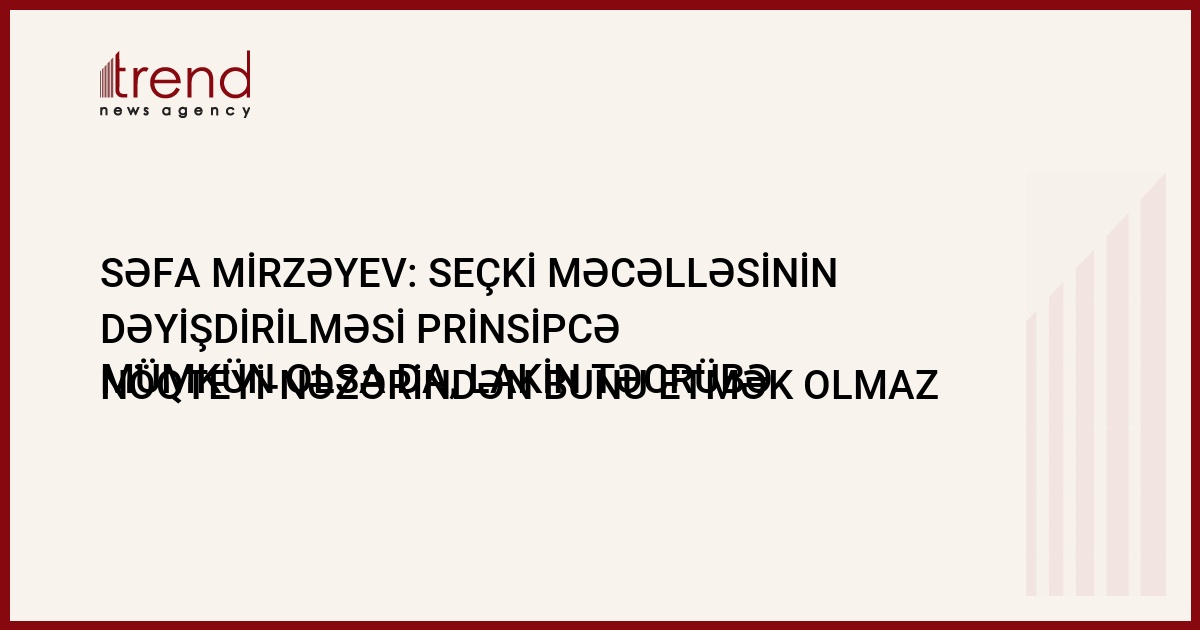 Azərbaycanın seçki məcəlləsinin prinsip etibarilə dəyişdirmək mümkün olsa da, lakin hazırda praktik nöqteyi-nəzərdən bunu etmək olmaz. Trend in məlumatına görə, sentyabrın 5-də Bakıda keçirilən "Seçkilər və Demokratik İnkişaf" konfransında Milli Məclis Aaparatının rəhbəri Səfa Mirzəyev bildirib.