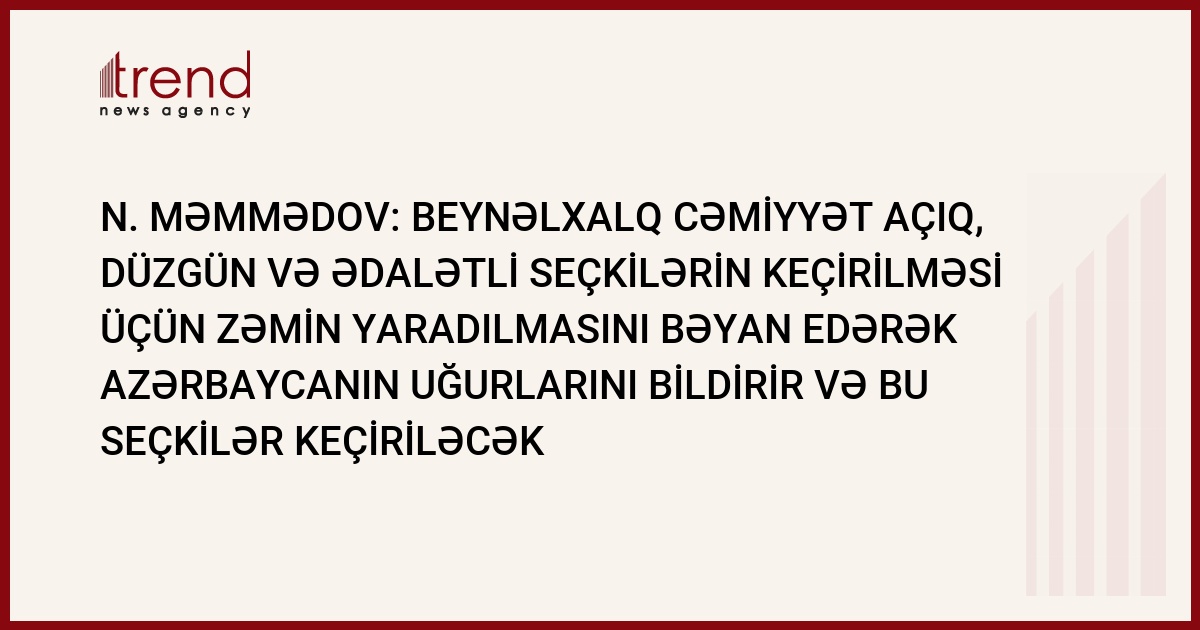 "Beynəlxalq cəmmiyyət inanır ki, bizim ölkəmizdə şəffaf seçkilər keçiriləcək və Azərbaycan rəhbərliyi bunun üçün mümkün olan hər bir şeyi edəcək"-deyə N. Məmmədov vurğulayıb.
