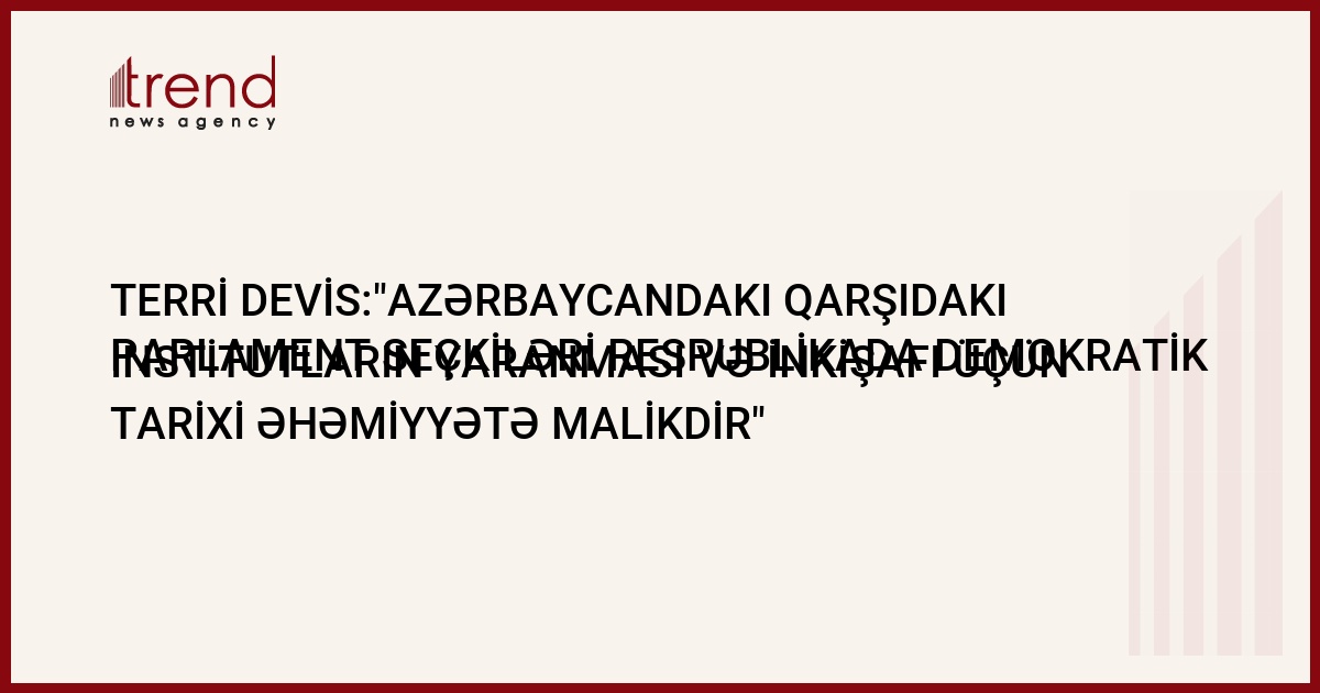 Azərbaycanda qarşıdakı parlament seçkiləri respublikada demokratik institutların yaranması və inkişafı üçün tarixi əhəmiyyətə malikdir.