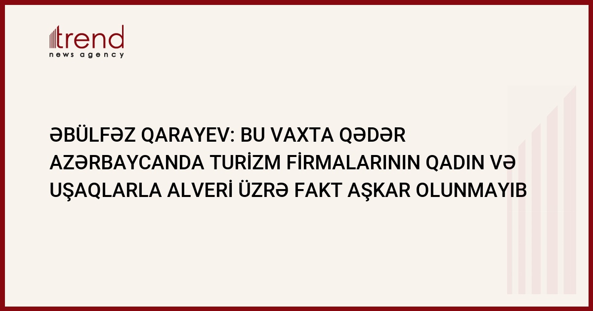 Bu günə kimi Azərbaycanda turizm firmalarının qadın və uşaqlarla alveri üzrə fakt aşkar olunmayıb. Bu barədə Trend ə avqustun 6-da gənclər, idman və turizm naziri Əbülfəz Qarayev məlumat verib.
