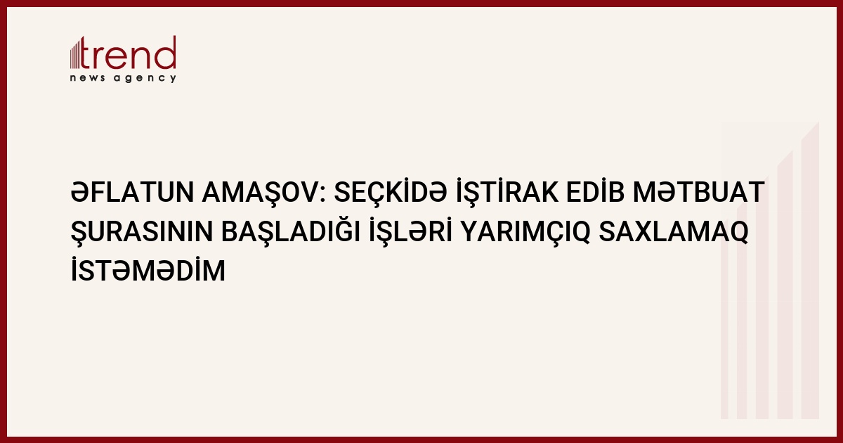 "Mətbuat sahəsində görüləsi işlər, həllini gözləyən problemlər çoxdur, buna görə də parlament seçkisində iştirak etmək fikrindən daşındım". Bu fikirləri Trend ə açıqlamasında Azərbaycan Mətbuat Şurasının sədri Əflatun Amaşov bildirib.